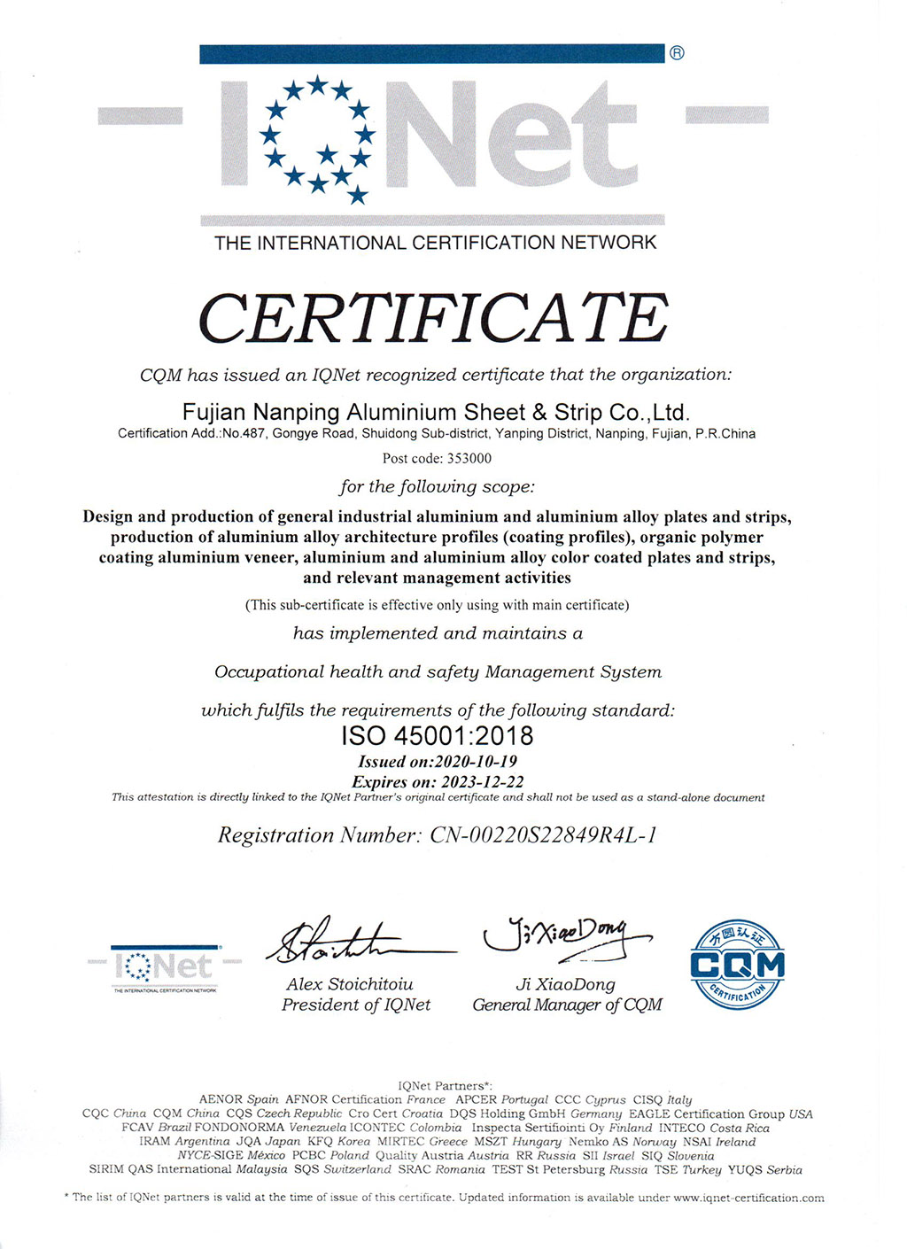 ISO45001IQNet證書--南鋁板帶